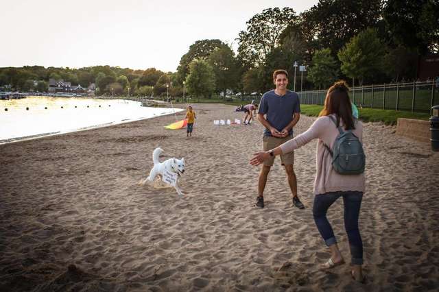 Ghost the pooch was given an important role when Mark decided to bring the love of his life to Lake Geneva, Wisconsin, to propose to her.