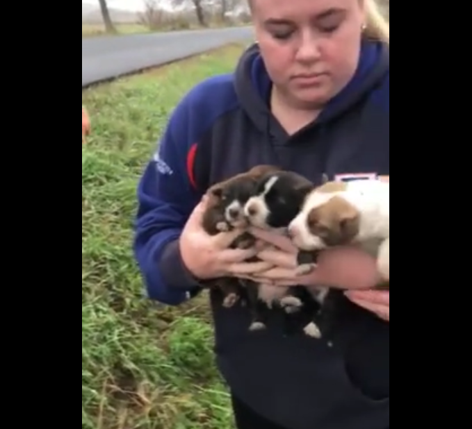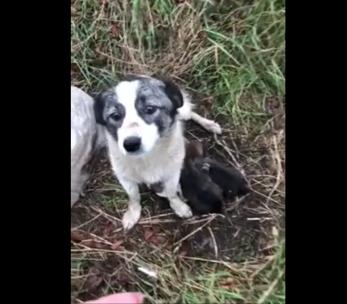 A group of kind-hearted people rescued a mama dog with her puppies after they were abandoned at the side of a road.