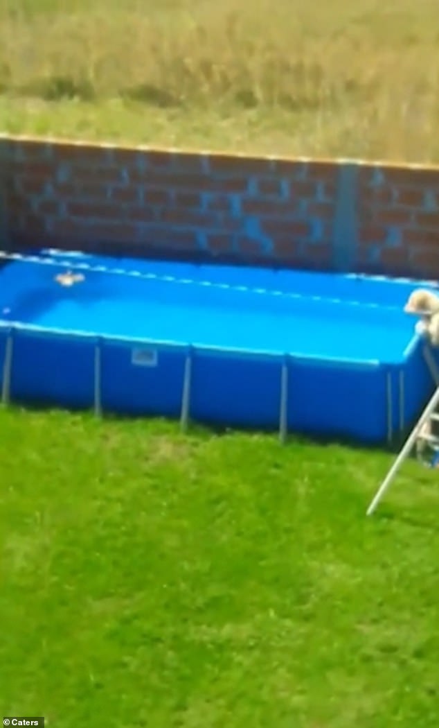 He left it on the grass after he rescued the bird from drowning in the paddling pool.