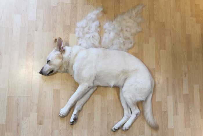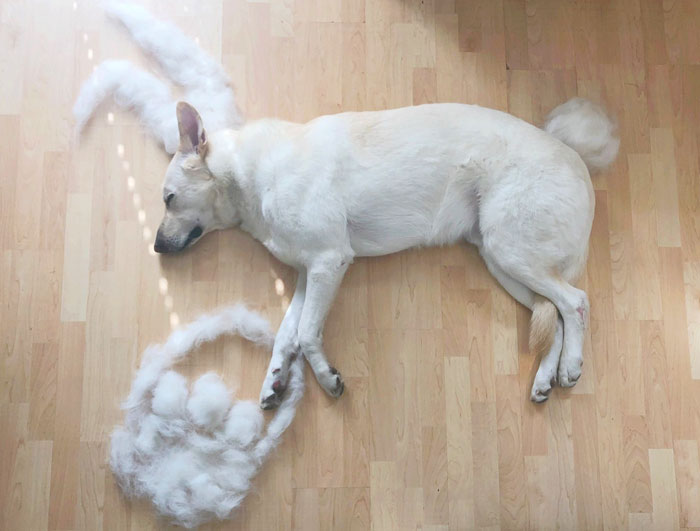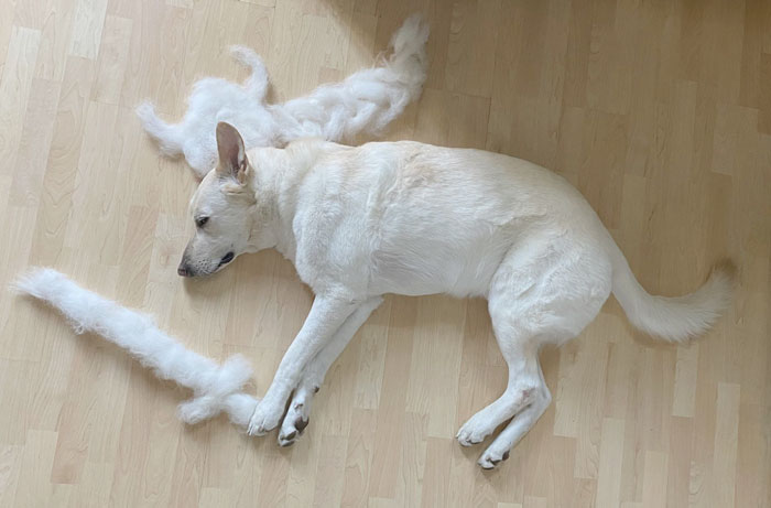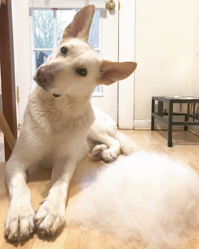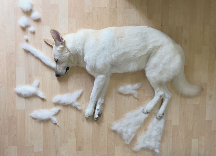One day, rachelfromearth got an idea after grooming her pet. The woman collected Mowgli’s fur into a pile and took a few photos of it. The leftovers of the shed hair immediately transformed into something amusing.
