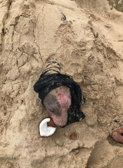 The rescuers dug out the dog from O’ahu beach in Hawaii. But they found the dog with sunburn, 90% of the fur missing, and deep wounds on its legs indicating its owner had used a weapon to hurt it.