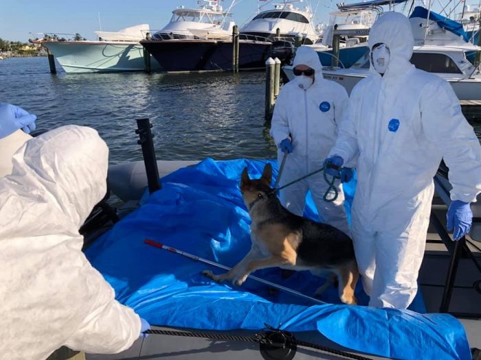 “The team dressed in full personal protective gear and headed out to the vessel, where they boarded the boat and located the dog,” the post continued.