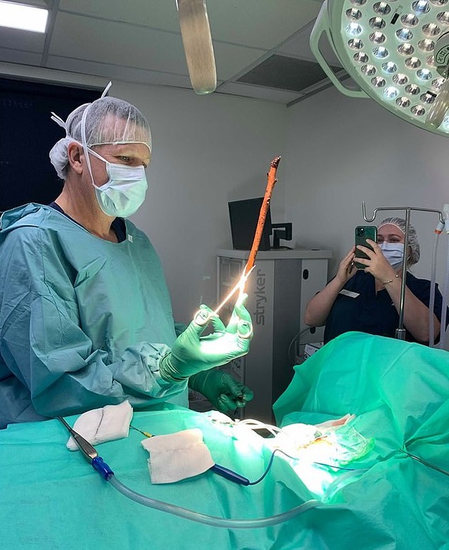 “ARH Specialist Surgeon Dr David Simpson was called in late that night and a CT was performed to locate the exact location of the stick to prepare for surgery.”