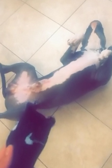 Meet Legacy, Legacy is a very creative dog ad he loves to create and destroy everything he can find. Recently when his owner was out he got into playing with a sock and did not realize that he tore it apart in pieces.