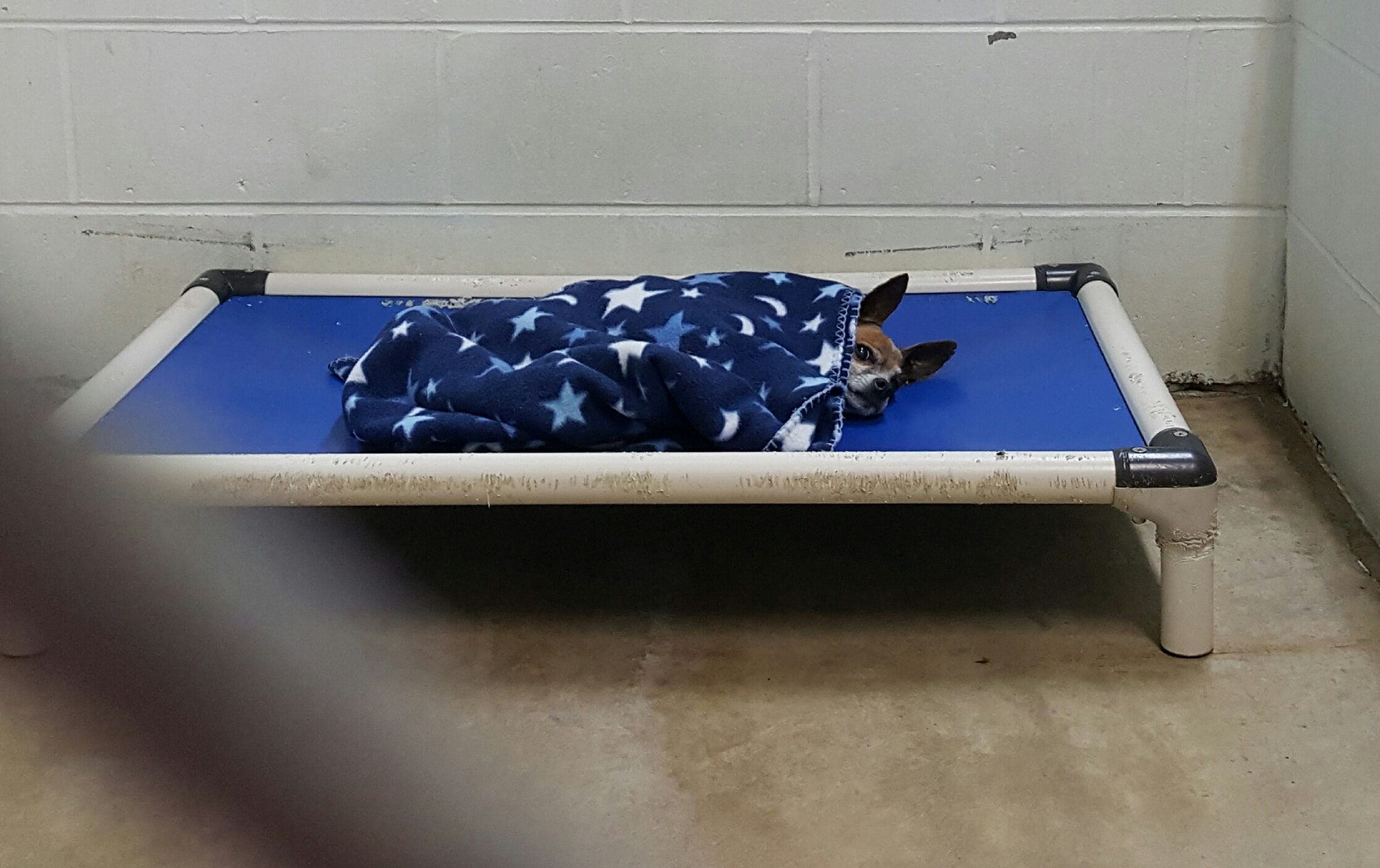Scooter, a senior Chihuahua mix, was surrendered when his owner passed away, but what she has seen broke her heart. She took a picture and hoped that it would inspire someone to welcome him into their home.