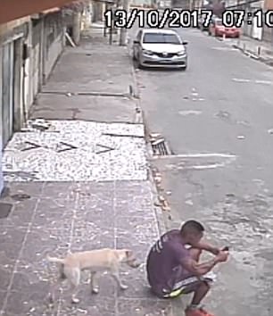 One user commented: ‘This dude just tried to kick a dog, thought yes it peed on him. It doesn’t know any better. He deserved it if he even had the audacity to do such a thing.’