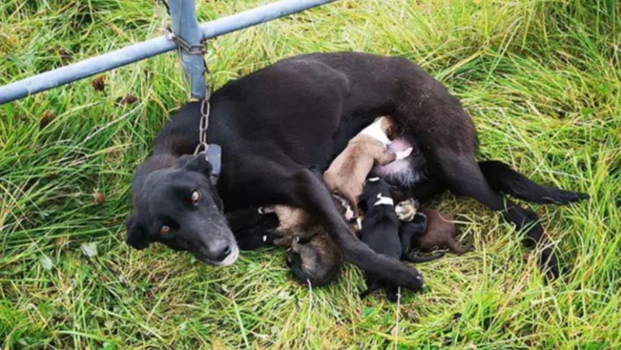 Recently, a dog was found chained and abandoned with six newborn puppies. It’s so sad even to see the mother in a helpless position to help her babies.
