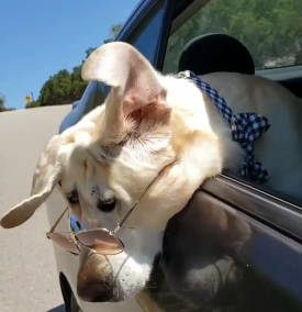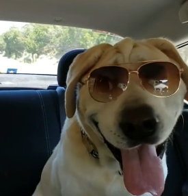 Watch this super cool dog wearing sunglasses and enjoying his drive.