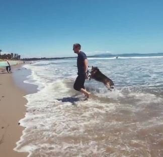 Rocky was initially doubtful of letting Herschel into the sea, but later, he let him and allowed the dog to have fun that he deserved.