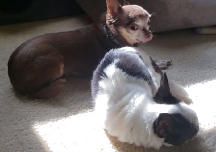 In this video, the dog can be seen taking a nap and it is just too adorable. Despite being born without front legs, Maggi has learned to do things on her own.