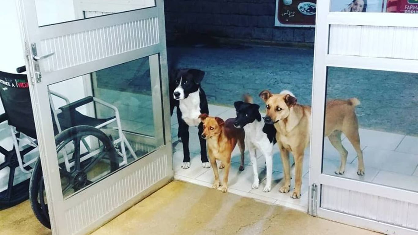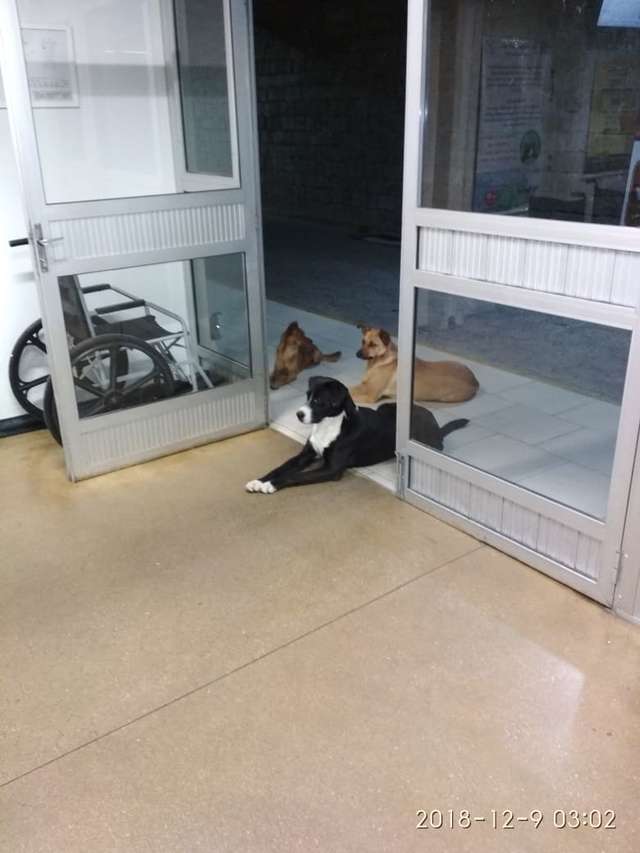 But since hospitals don’t allow pets to enter, Cesar didn’t want to take them with him, but 4 of them kept walking along with him. When he arrived at the hospital premises, he asked them to stay outside the building and wait for him.