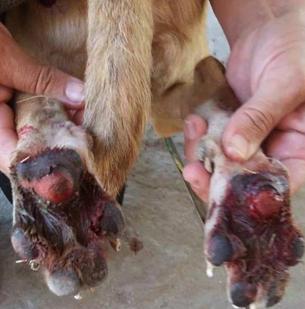 Everyone was just stunned to see the picture, as the dog’s feet were completely burned due to walking on the hot pavement in the summers.