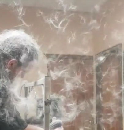 When we say everywhere, it is every nook and corner of the room. Not just that, a song for in the beard of a groomer and even on his hair and clothes.