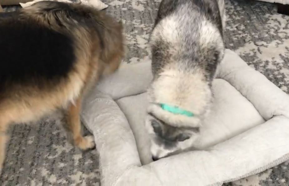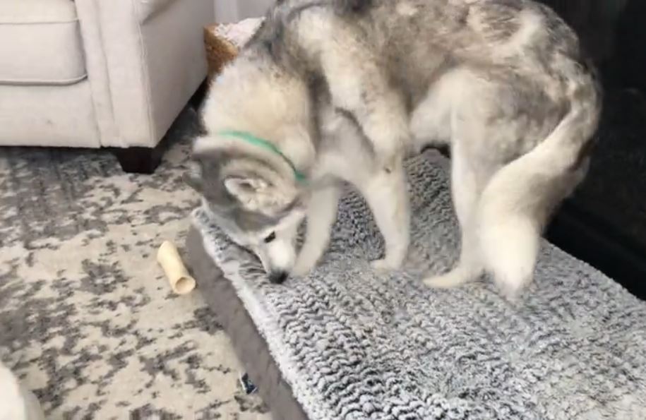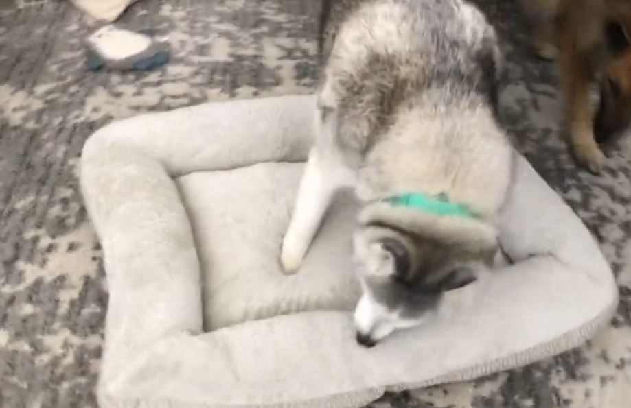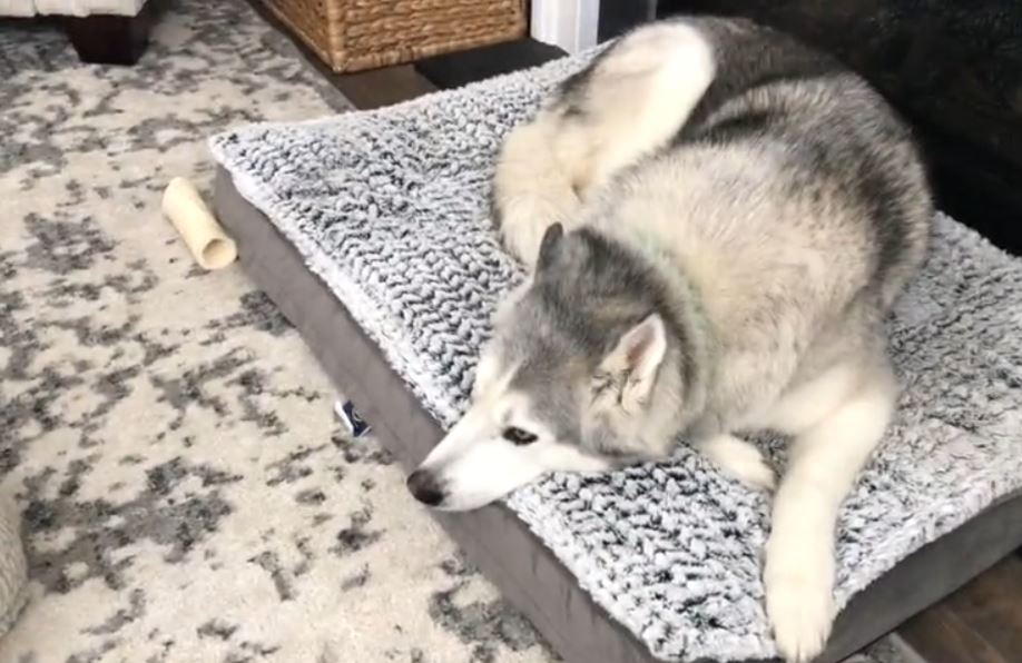 Zeus is a stubborn husky who is as moody as his owner. When his bed got replaced, he proudly showed off his new bed by sitting on top of it and not letting anybody come near.