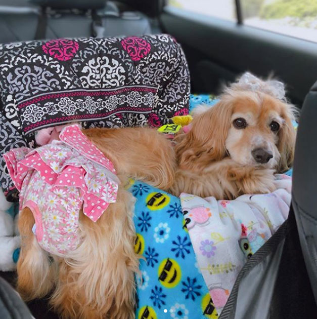 The car belonged to a rescue’s foster mom was stolen with Cocker Spaniel’s disability supplies. The disabled pup named Violet had a custom wheelchair with special boots to protect her feet when they move on the ground.