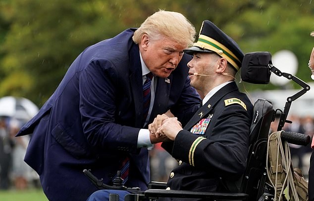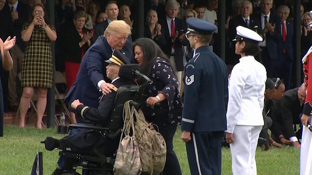 It was a rare display of affection shown by Donald Trump when he hugged the injured Afghanistan hero who sang God Bless America on his wheelchair.