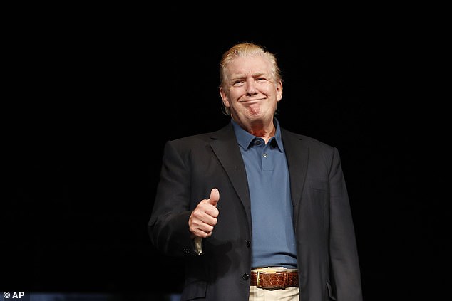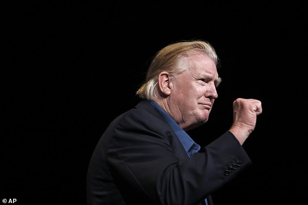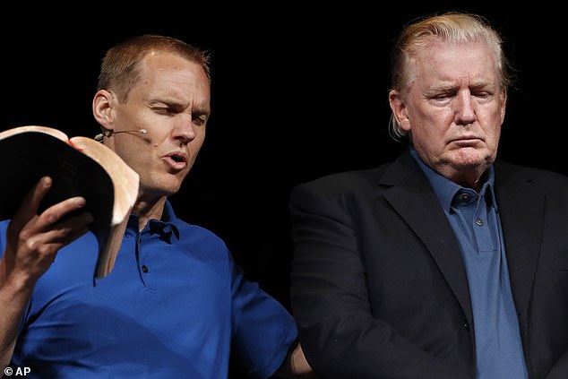 One Twitter user wrote: ‘Trump at Vienna VA church wearing Joe Biden’s hair.’