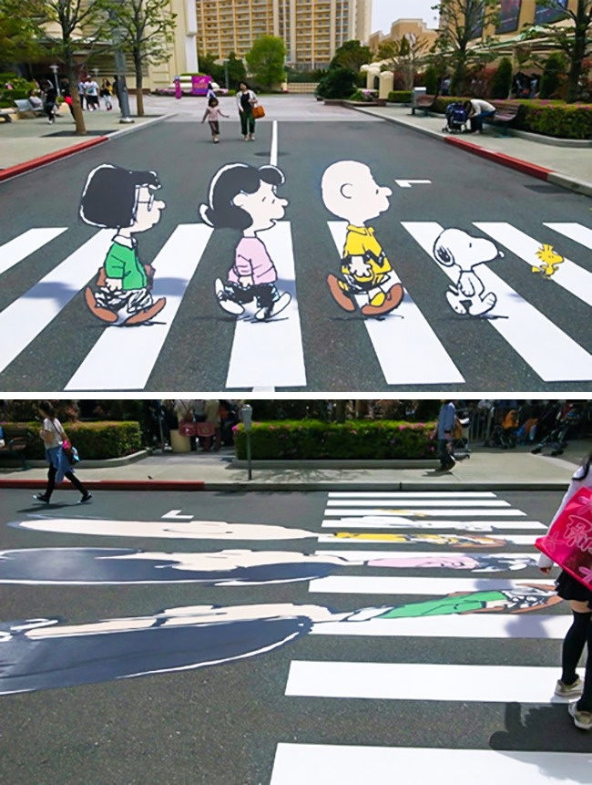 #5. “Pretty cool illusion meant to slow down drivers at a crosswalk.”