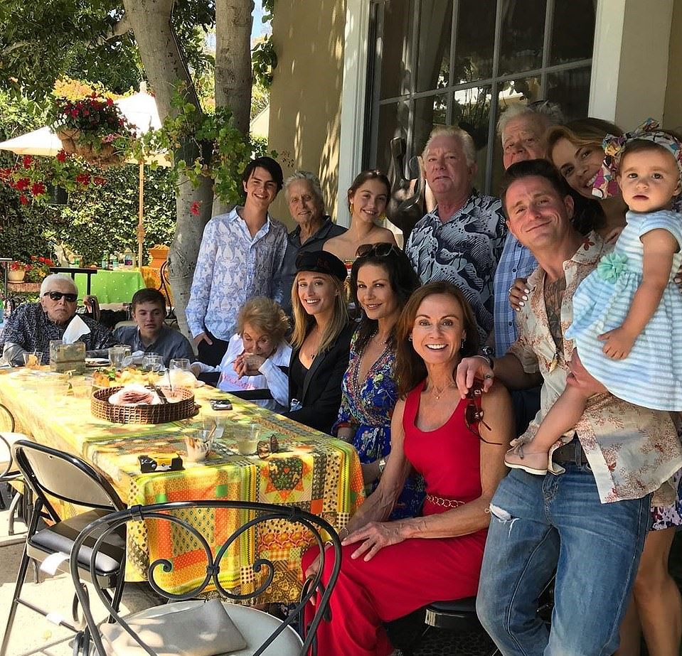 From Kirk Douglas to baby Lua, the four generations of the Douglas family have gathered to enjoy a family lunch at a Beverly Hills home together.