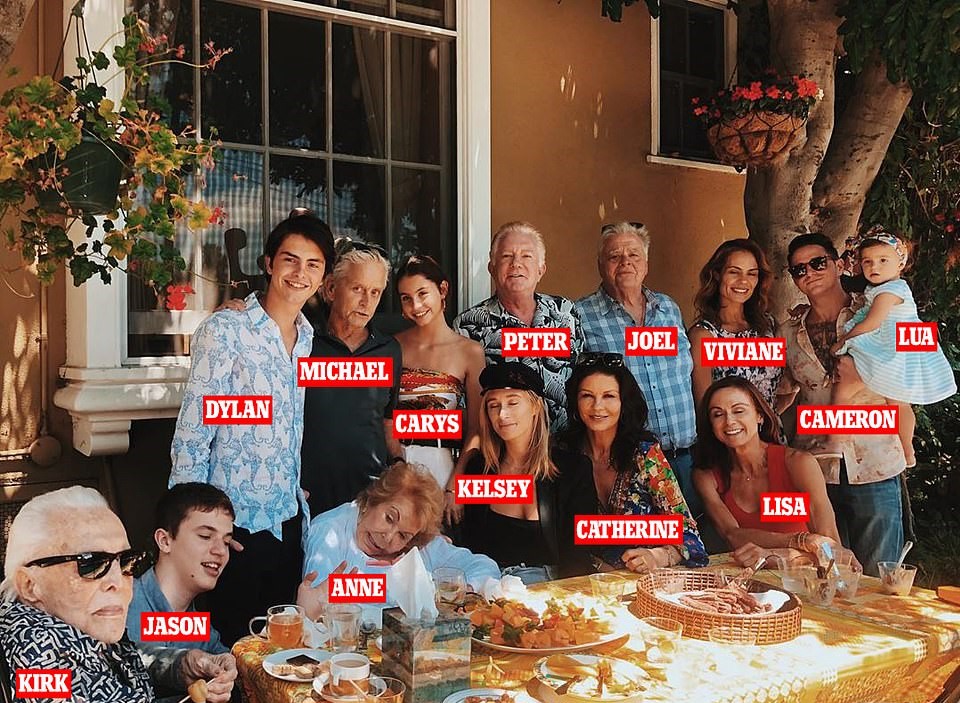 The four generations have piled up at the home of 74-year-old Michael Douglas and his 49-year-old wife, Catherine Zeta-Jones.