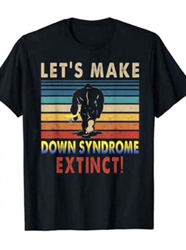A mother was left disgusted after she found a “Let’s make Down Syndrome extinct” t-shirt on Amazon.