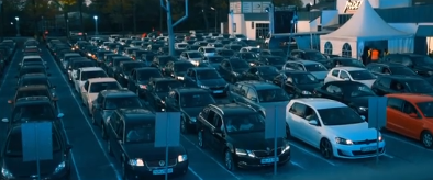 A German parking lot was converted into a rave party with 250 cars and as many as two humans inside each car.