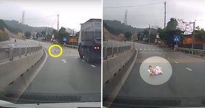 On March 13, a driver in Quang Ninh, Vietnam with his car’s dash cam running noticed something crawling on a busy highway. The truck driver in the next lane frantically waves his arm to try and make him stop.