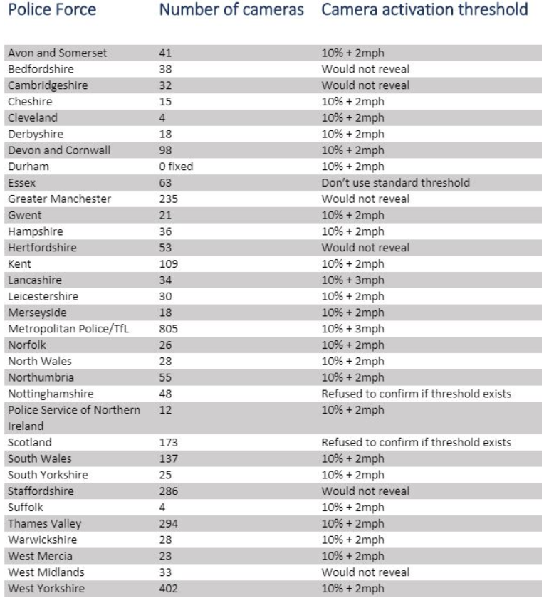 There are like 3224-speed cameras for which freedom of information was submitted to know more about it from the police force.