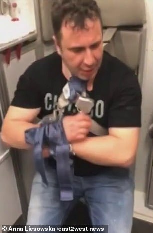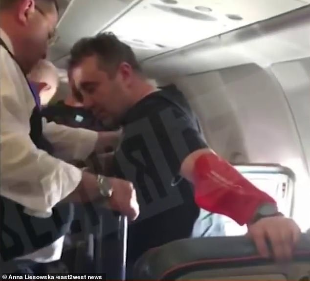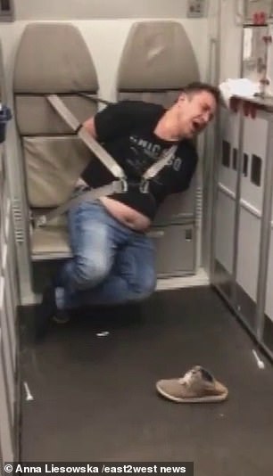 The passengers tied him to his seat with a belt for four hours until the aircraft landed safely in Moscow.