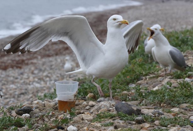 Many seagulls have been seen guzzling glasses of beer and drinking the last few drops of wine up and down the country.