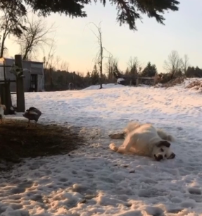 He rolled in the snow. Yes, he rolls and rolls and has his own kind of fun that no one else could have for sure. What is a better thing to do anyway?