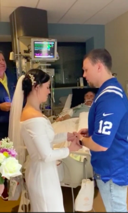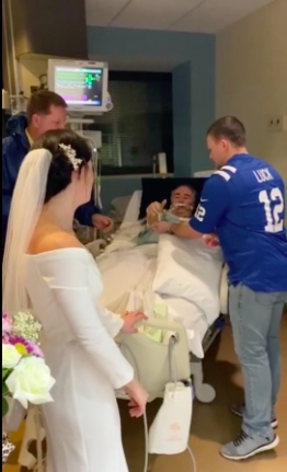 The bride said that after they finalized this decision, some of her close friends rushed to an apparel shop to get a wedding dress for her and they finally got married inside the ICU.