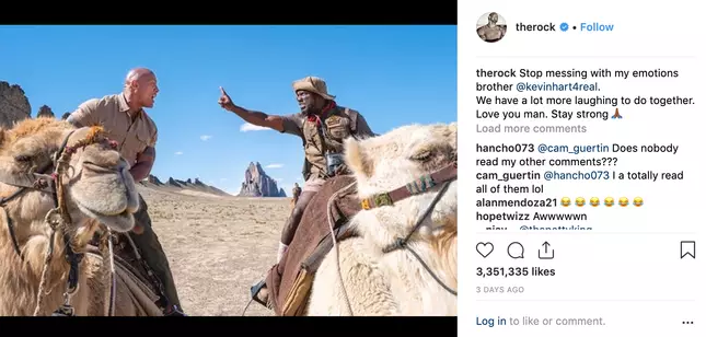 Later Dwayne added in his funny tweet that when Kevin Hart got injured himself he got to step-in and yes he left his honeymoon early with complete approval from his wife Lauren who also adores Kevin a lot.