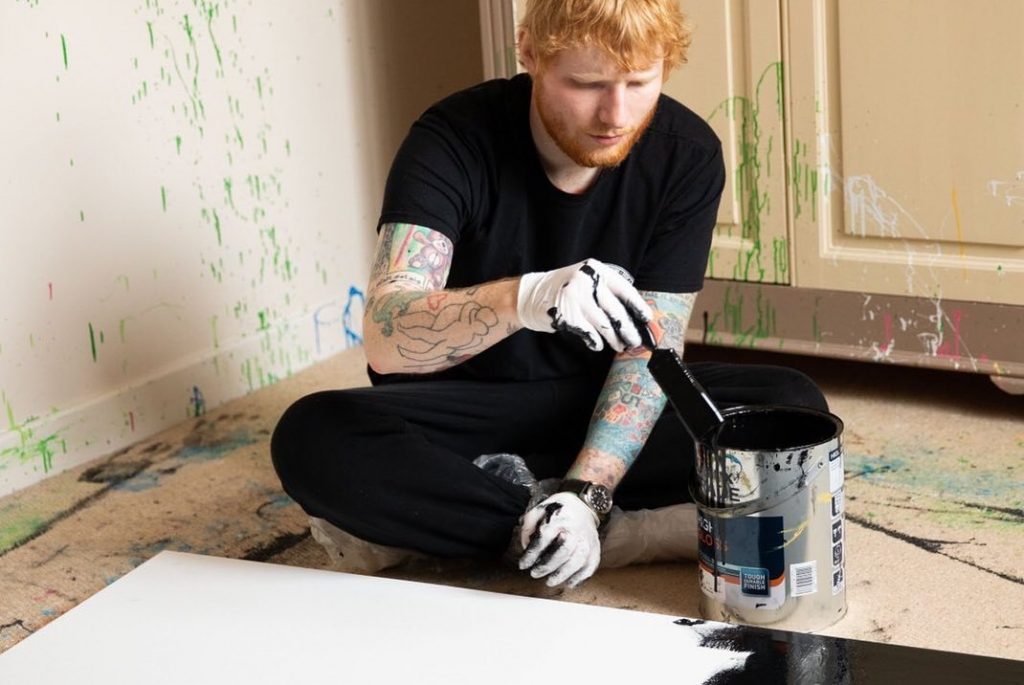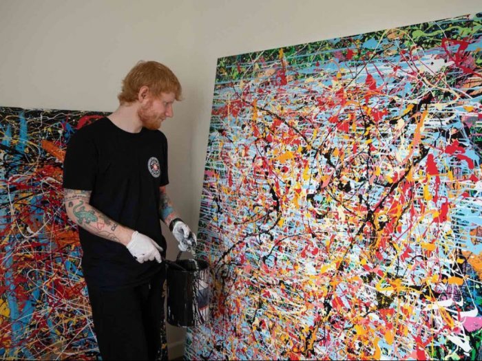 Ed posted pictures of some of his latest pieces, which consist of large canvases covered in splatters of paint, as he admitted this type of art is totally new to him.
