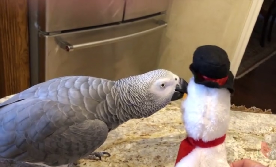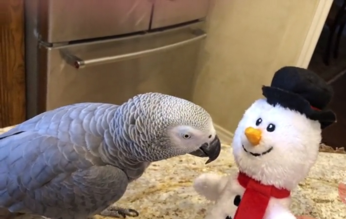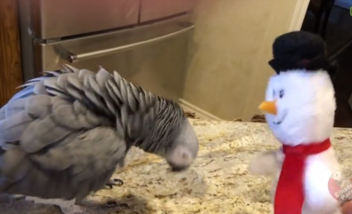 Einstein the parrot loves dancing and so he also follows the snowman!