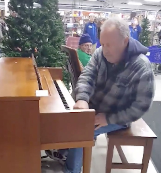 The Goodwill store in Norwalk was given a piano by a generous donor and one elderly man came around that day and started playing the piano.
