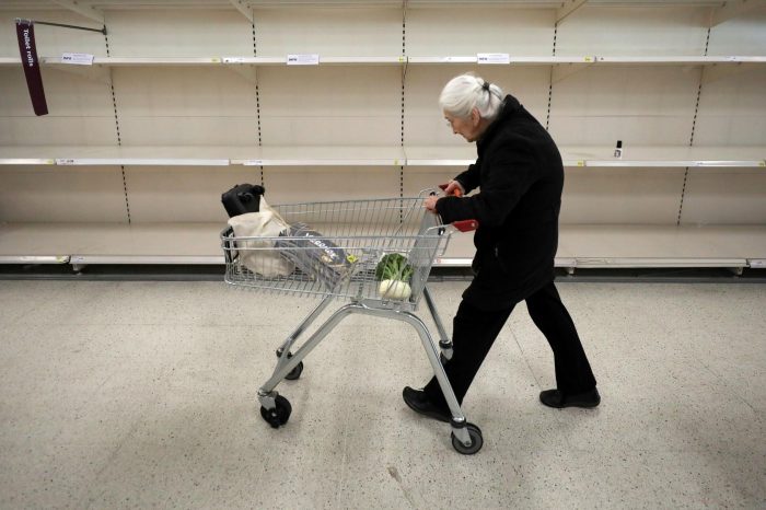 Reading his shopping list, a pensioner was hit by the shocking reality as supermarket shelves were stripped bare by panic buyers and selfish customers.