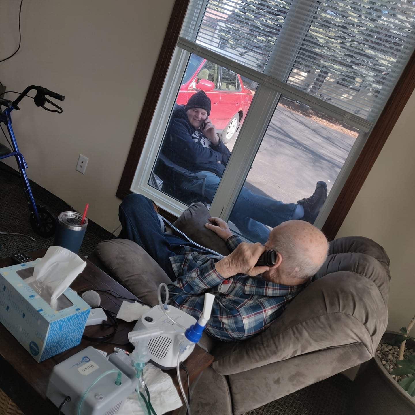 Sandy Hamilton, from Minnesota USA, who works at the aged-care facility that has been put in coronavirus lockdown, shared a heartwarming picture of a man chatting to his elderly father through a care home window amid coronavirus lockdown.