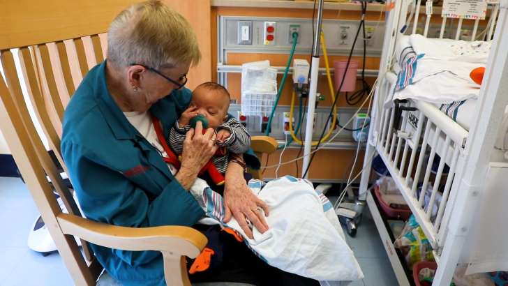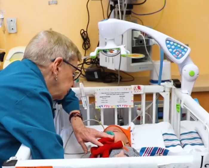She is also known as the “Grandma Cuddler”. She spends a good amount of her time comforting and cuddling newborns in the NICU.