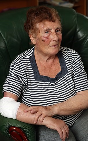 It took five people working in a nearby factory to save the 74-year-old woman who was mauled by the dog ‘like a lion dragging an antelope.’