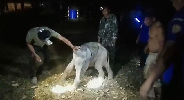 The baby elephant was crying loudly when rescuers arrived and performed CPR on it.