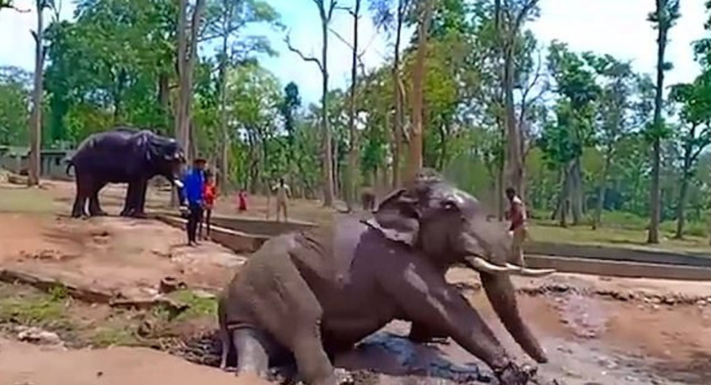 It is such a heartbreaking video to see the animal fall and die at the Nagarahole National Park in the Southwestern state of Karnataka.