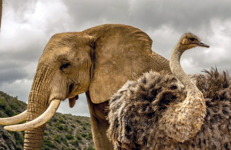 “Visitors are so impressed with finding an ostrich walking with the elephants that they usually snap some pictures with her while they’re there.”