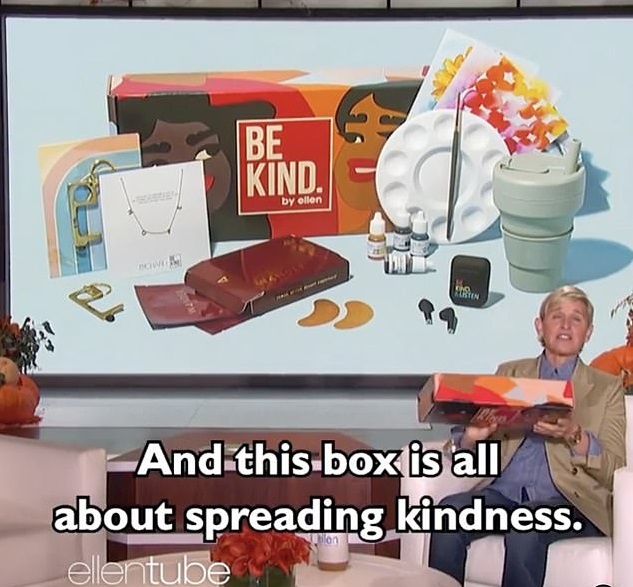 Introducing her fall gift set that comes at the price of $54.99, Ellen insisted the box was “all about spreading kindness.”