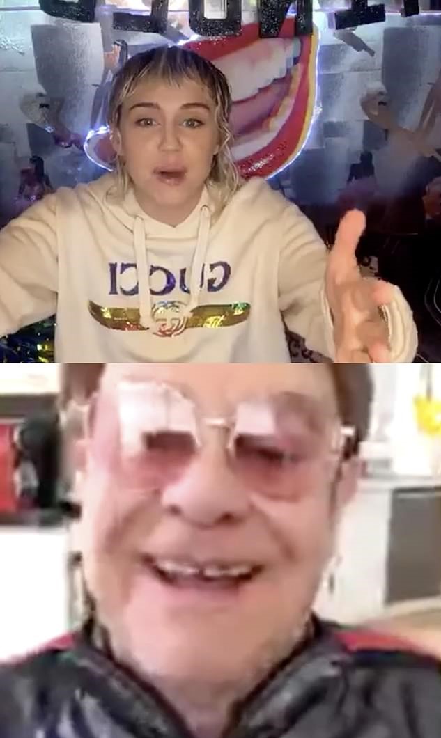 “I’m going to stick to my guns with the Aids Foundation and make sure because of this global pandemic that’s happening that the people who are suffering from another global pandemic don’t get forgotten,” the Rocket Man hitmaker told the Hannah Montana actress via a video call.