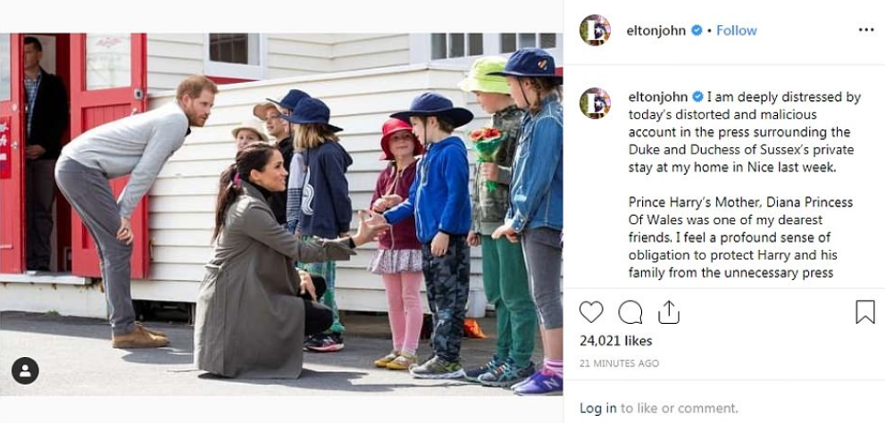 The seventy-two-year-old singer said that he had ensured that Meghan and Prince Harry’s flight from and to the French Riveria were carbon neutral as he made an appropriate contribution to one of the carbon footprint funds.