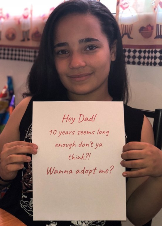 13-year-old Alexa Figueroa can be seen asking her stepfather to adopt her with a delightful photo album message. The video shows Alexa fidgeting excitedly while her stepfather Gus Roman flicks through the Father’s Day Gift.