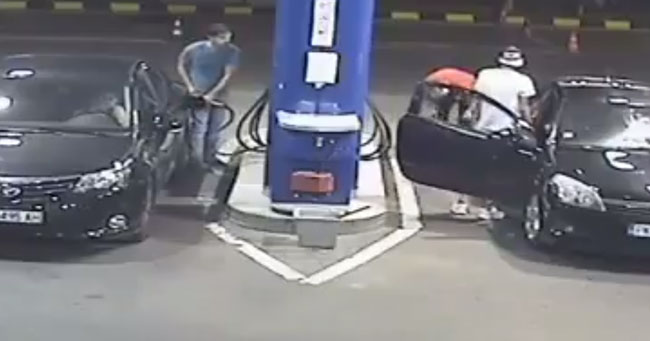 The station’s employees told him several times to put out his cigarette but he ignored them and kept puffing the cigarette right next to the gas pumps.