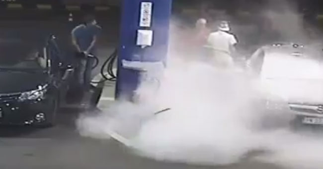 A man, who drove into a gas station for a refill, refused to put out his cigarette while pumping gas at Russia’s Gazprom gas station in Sofia, Bulgaria.