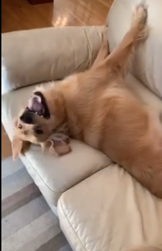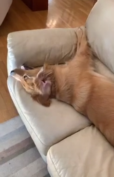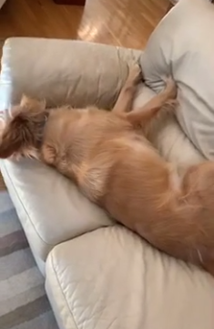 Every pet has a favourite spot in their house, and this dog seems to like his couch the most. Whenever the owner tries to wake him up, he rolls up and sleeps again.